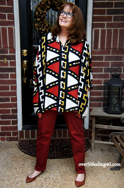 I love it and wear it as a tunic or a jacket with a black tank underneath. It was one way to keep a garment and re-fashion it to work better for me.