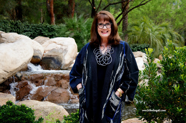 My entire trip to the second national BLOGGERS AT MIDLIFE conference is sponsored by the amazing talent at ARTFUL HOME, so each outfit has a super star selection from their designers. My gratitude for this opportunity is huge and I love representing such creative genius! Fashion for women over 50 at a high level of design.