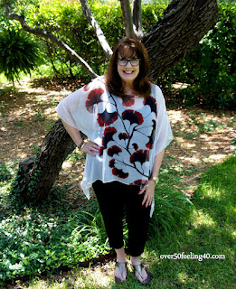 SOFT SURROUNDINGS is one of the places I find those fashions. You can get the information on today's style below...this sheer top is perfect to look great and stay cool in the heat...and summer is finally beginning on Monday!!